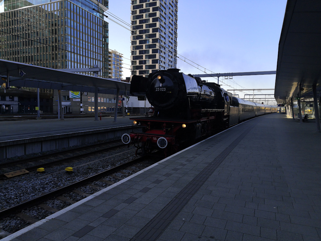 La BR 23 023 du Stoom Stichting Nederland de passage à Utrecht Centraal.