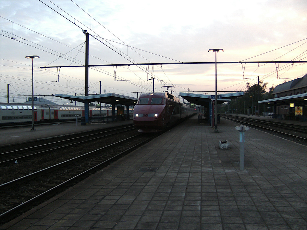 | Itinéraire et horaire | En 1997 - 1998 : 9496 : Namur (07h25) - Charleroi-Sud (07h53) - Mons (08h21) - Paris-Nord (09h41)9497 : Paris-Nord (10h58) - Mons (12h21) - Charleroi-Sud (12h52) - Namur (13h20) 9498 : Namur (14h22) - Charleroi-Sud (14h50) - Mons (15h18) - Paris-Nord (16h38) 9499 : Paris-Nord (19h07) - Mons (20h27) - Charleroi-Sud (20h58) - Namur (21h26) En 1999 : 9496 : Namur (07h29) - Charleroi-Sud (07h59) - Mons (08h25) - Paris-Nord (09h47)9498 : Namur (14h29) - Charleroi-Sud (14h59) - Mons (15h25) - Paris-Nord (16h47) 9497 : Paris-Nord (10h34) - Mons (11h56) - Charleroi-Sud (12h23) - Namur (12h53) 9499 : Paris-Nord (19h10) - Mons (20h33) - Charleroi-Sud (21h01) - Namur (21h31) En 2012 : 9406 : Liège-Guillemins (05h51) - Namur (06h35) - Charleroi-Sud (07h03 - 07h05) - Mons (07h37) - Paris-Nord (09h04)9487 : Paris-Nord (19h01) - Mons (21h01) - Charleroi-Sud (21h25 - 21h35) - Namur (21h54) - Liège-Guillemins (22h45) |