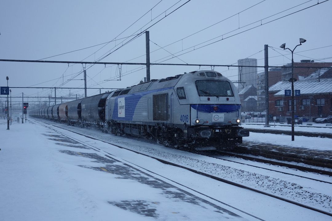 L'EuroPorte 4016 tracte une rame de wagons céréaliers Tagnpps VTG / Nacco.
